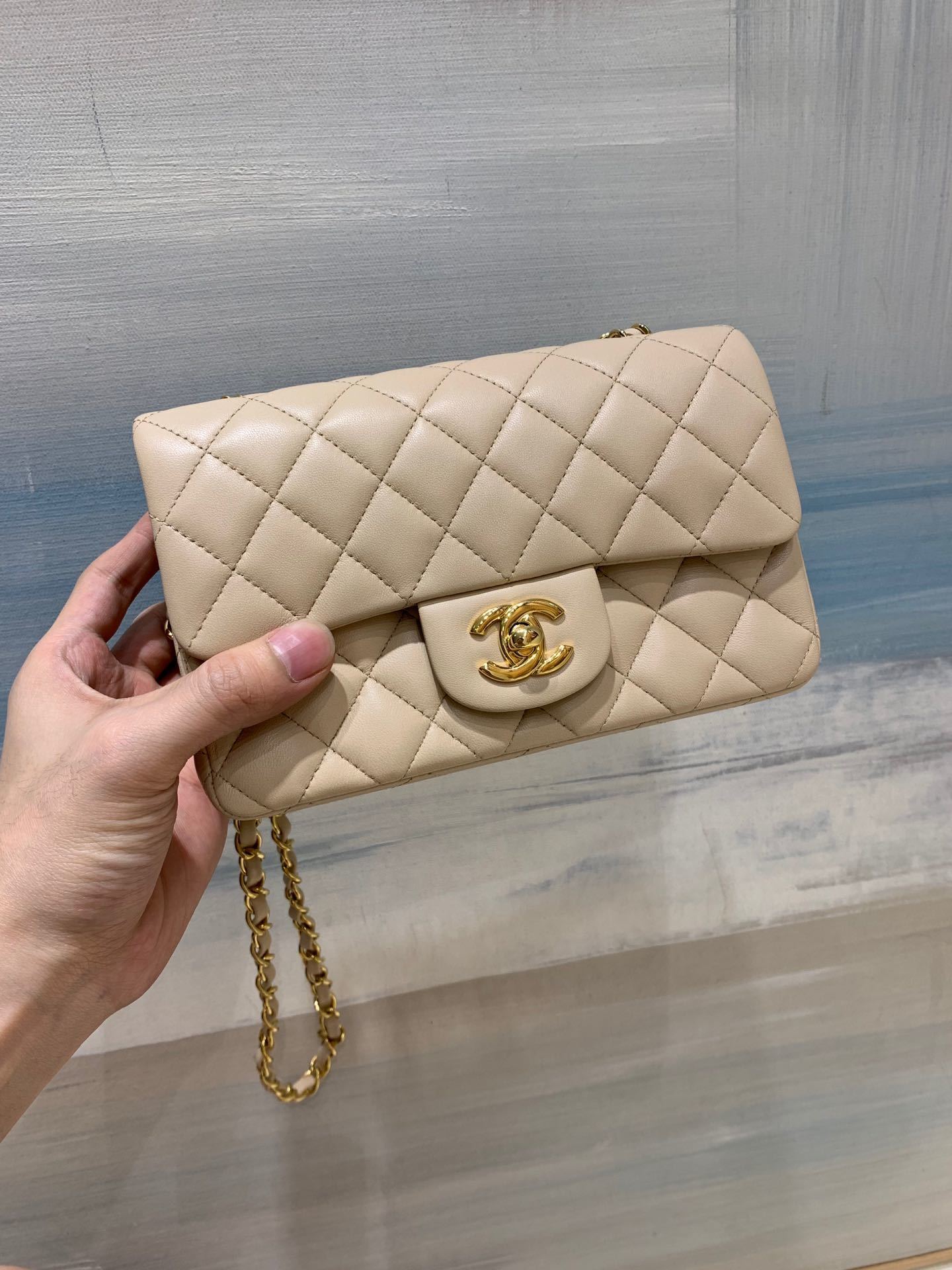 샤넬 플랩백 뉴미니 램스킨 금장