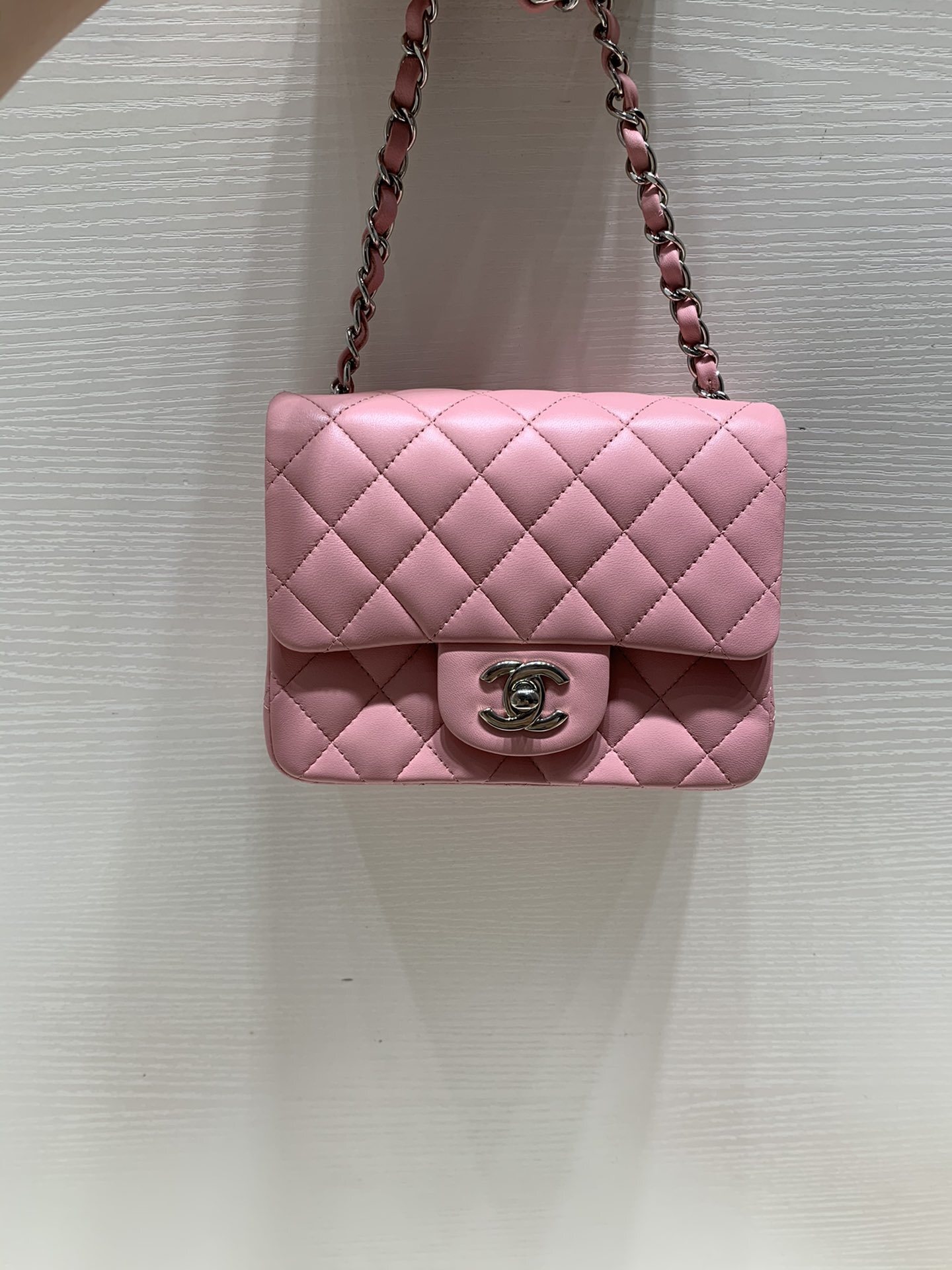샤넬 플랩백 미니 램스킨 핑크 은장
