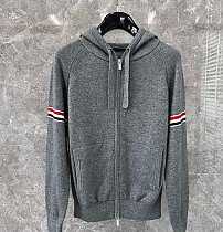 대리석 톰브라운 양팔 삼선 캐시미어 후드 집업 그레이