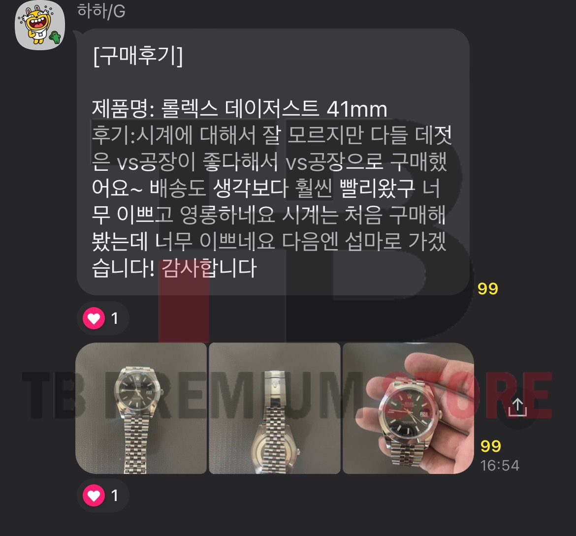 vs공장 롤렉스 데이저스트 41mm 후기 토보샵 0 159 03.20 12:27 제품명 vs공장 롤렉스 데이저스트 41mm [구매후기]제품명: 롤렉스 데이저스트 41mm후기: 시계에 대해서 잘 모르지만 다들 데젓은 vs공장이 좋다해서 vs공장으로 구매했어요~ 배송도 생각보다 훨씬 빨리왔구 너무 이쁘고 영롱하네요 시계는 처음 구매해봤는데 너무 이쁘네요 다음엔 섭마로 가겠습니다! 감사합니다